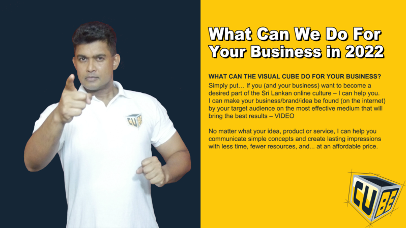WHAT CAN THE VISUAL CUBE DO FOR YOUR BUSINESS? Simply put… If you (and your business) want to become a desired part of the Sri Lankan online culture – I can help you. I can make your business/brand/idea be found (on the internet) by your target audience on the most effective medium that will bring the best results – VIDEO
